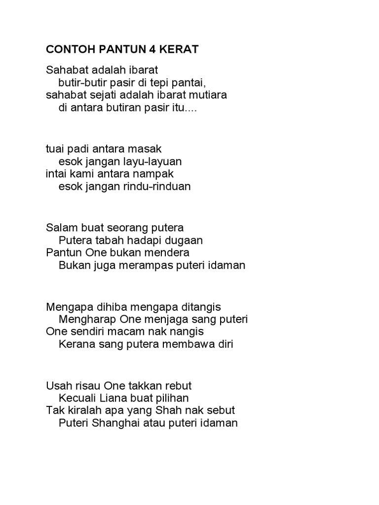 . Seni dan kurikulum seni adalah sebahagian dari kebudayaannya di mana kanak-kanak itu tinggal. Kalau penyakit datang berteman Ciri-ciri Pantun Empat Kerat Meragut nyawa tinggallah dunia. Baris-baris ini pula boleh dikumpulkan.
